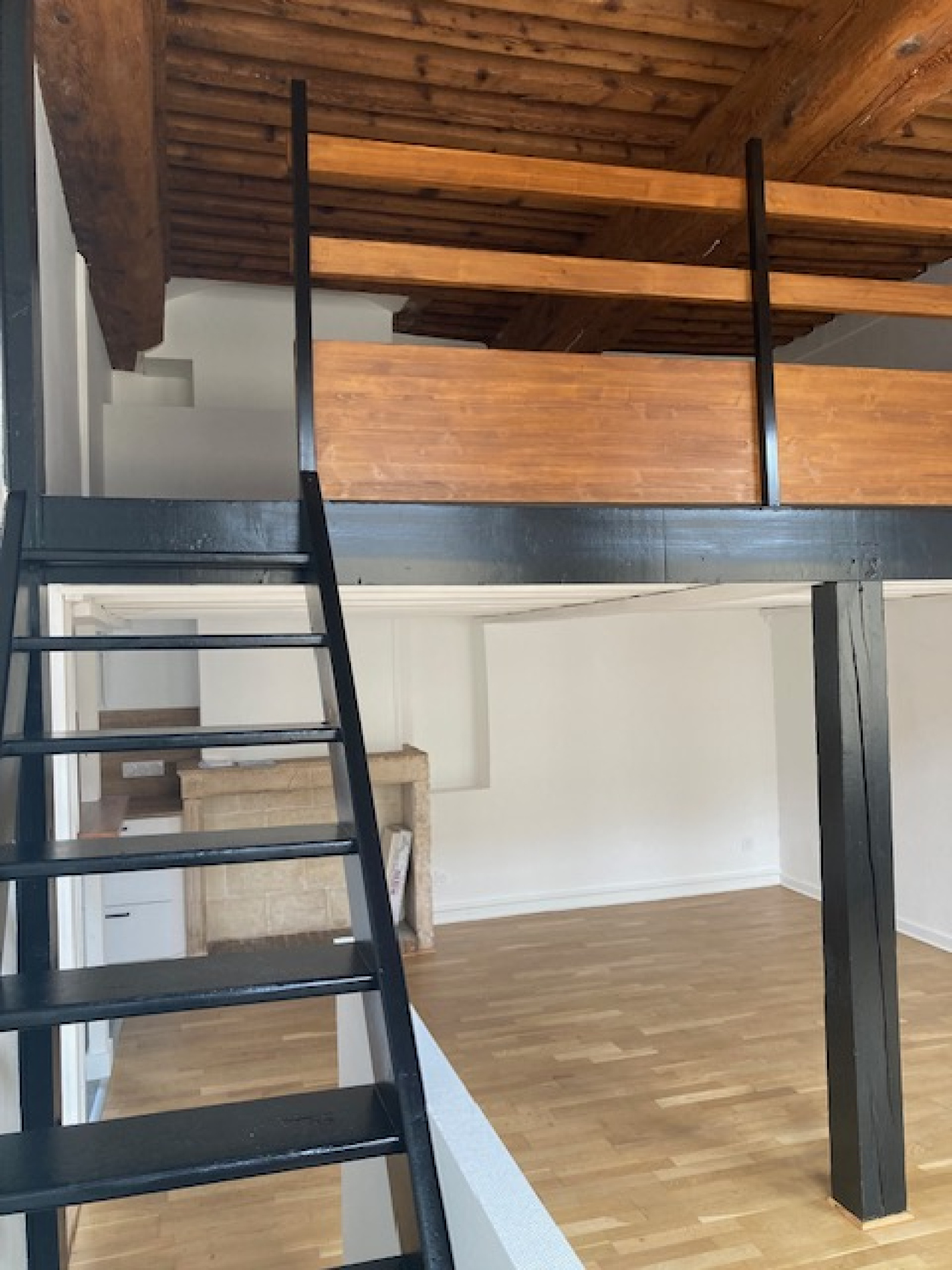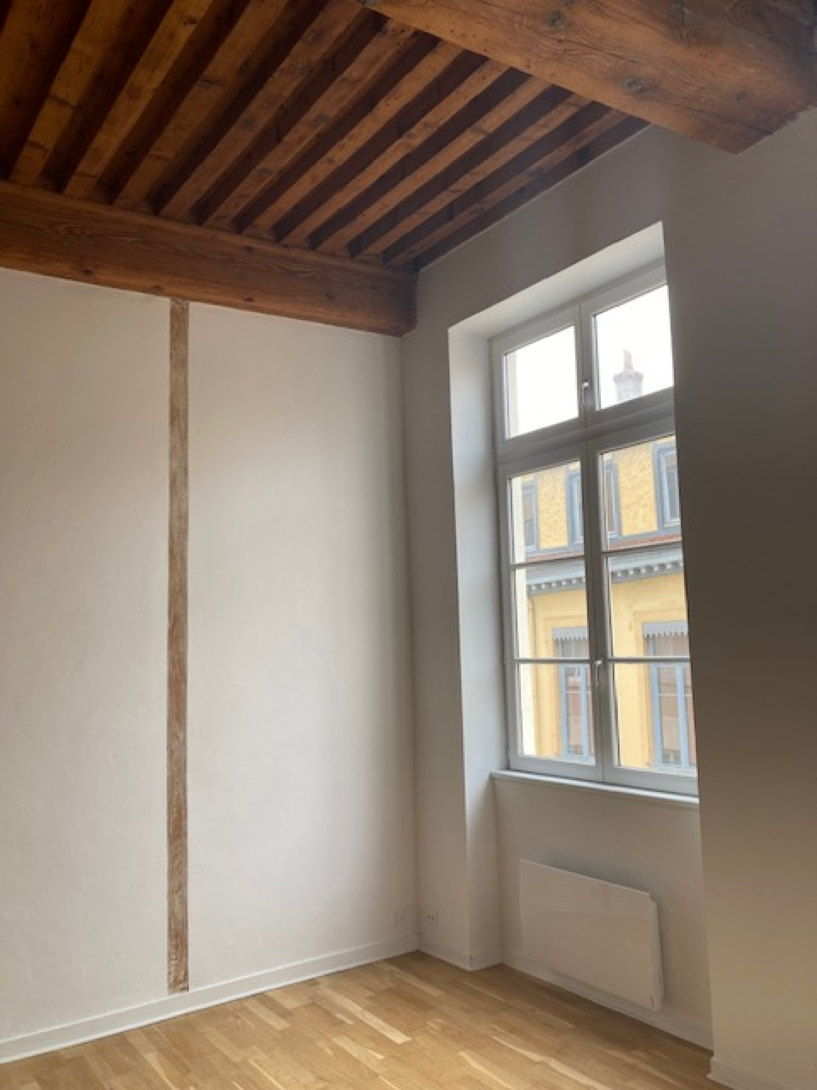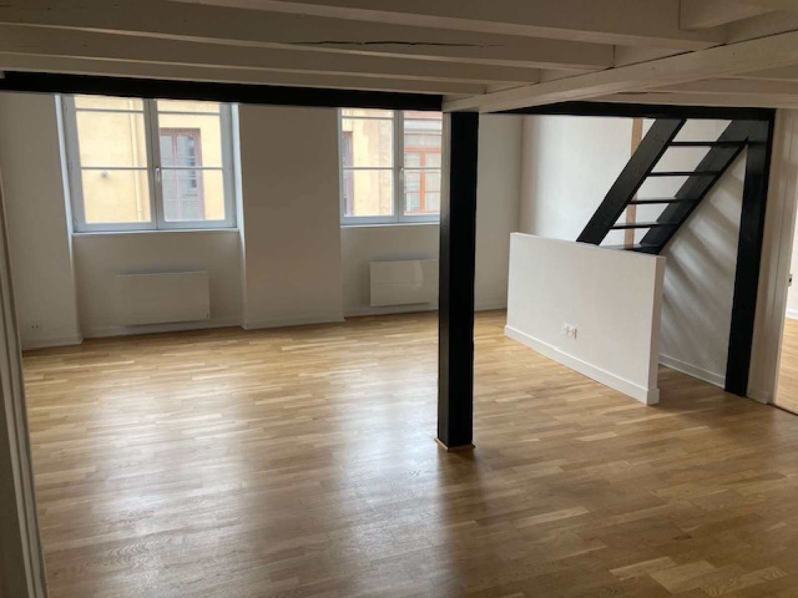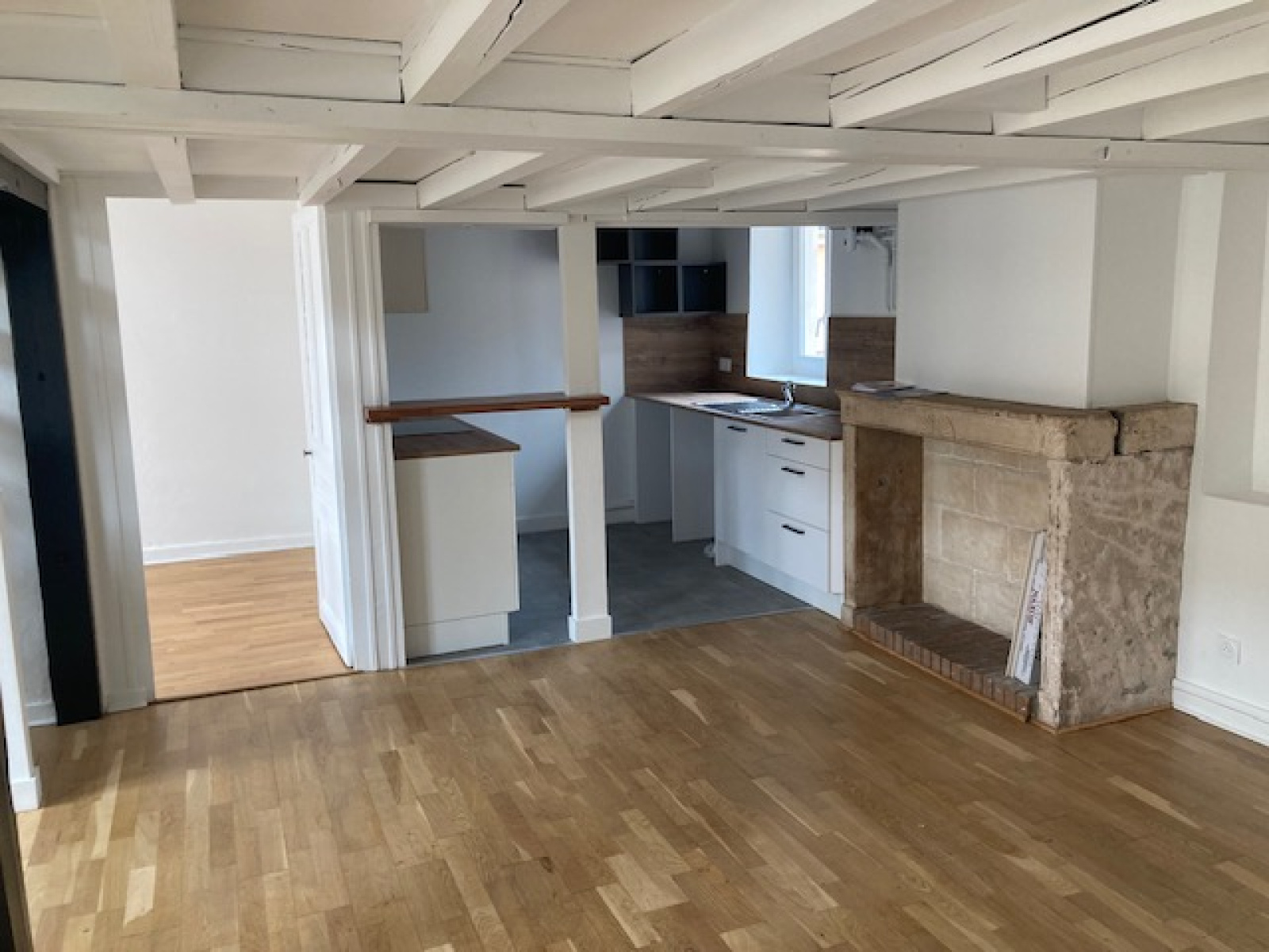 Bien refait à neuf , Type 3 de 66 M2 surface habitable et 96 M2 surface totale au 3ème étage sans ascenseur.Comprenant un séjour de 31 M2 avec plafond poutres apparentes à la française , cheminée , fenêtres double vitrage , cuisine meublée semi - équipée neuve , un WC , une salle de bains , deux chambres et une immense mezzanine de 28 M2 à l 'étage.Prestations , tout est neuf , sol parquet , double vitrage, chauffage électrique radiateur atlantic. Disponible 1er juin 2023.Contact bruno PERBET 06 13 63 26 43.