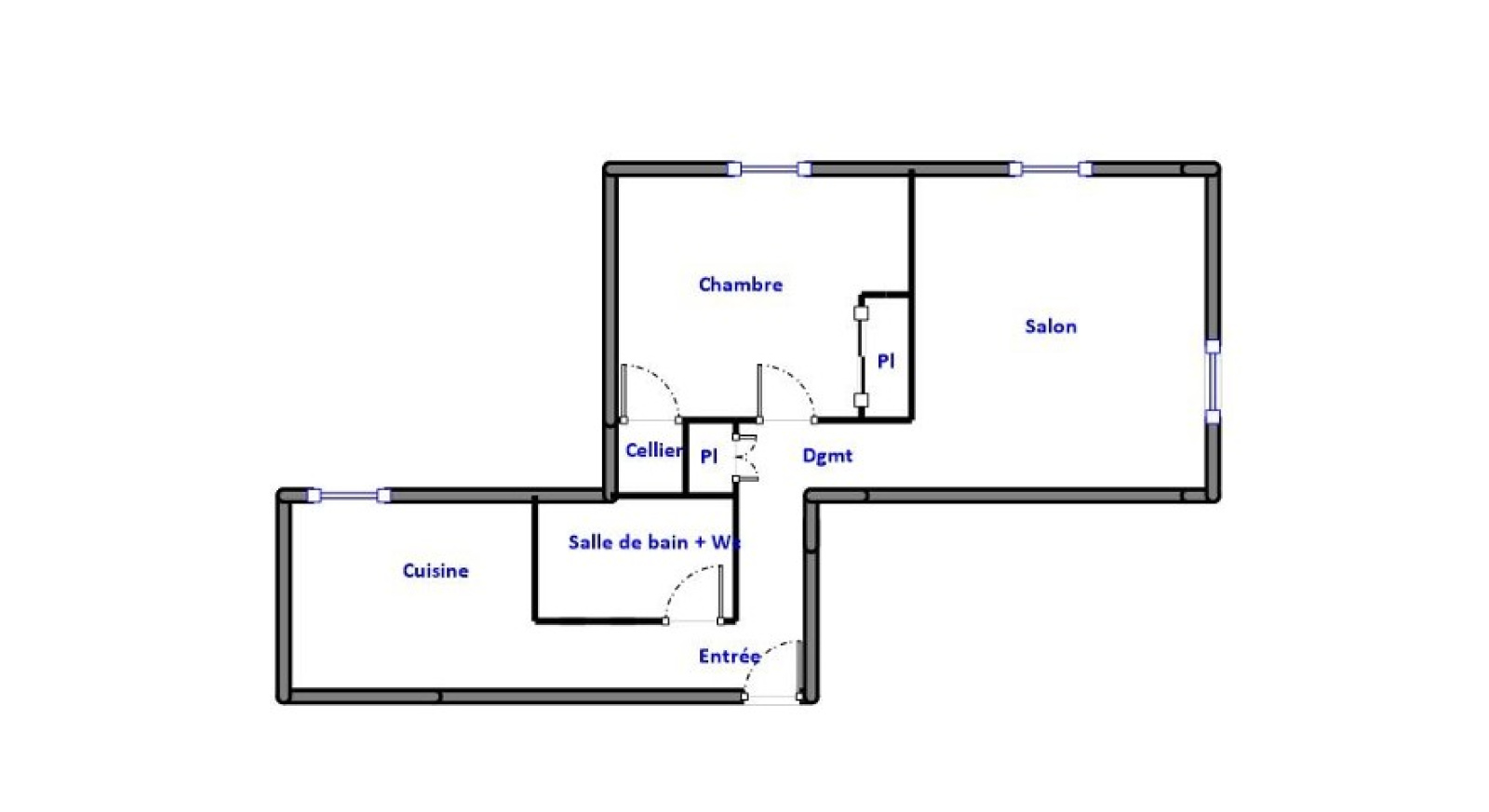 Il est composé d'une entrée, une cuisine séparée, une pièce de vie, une chambre, salle de bain et un wc.