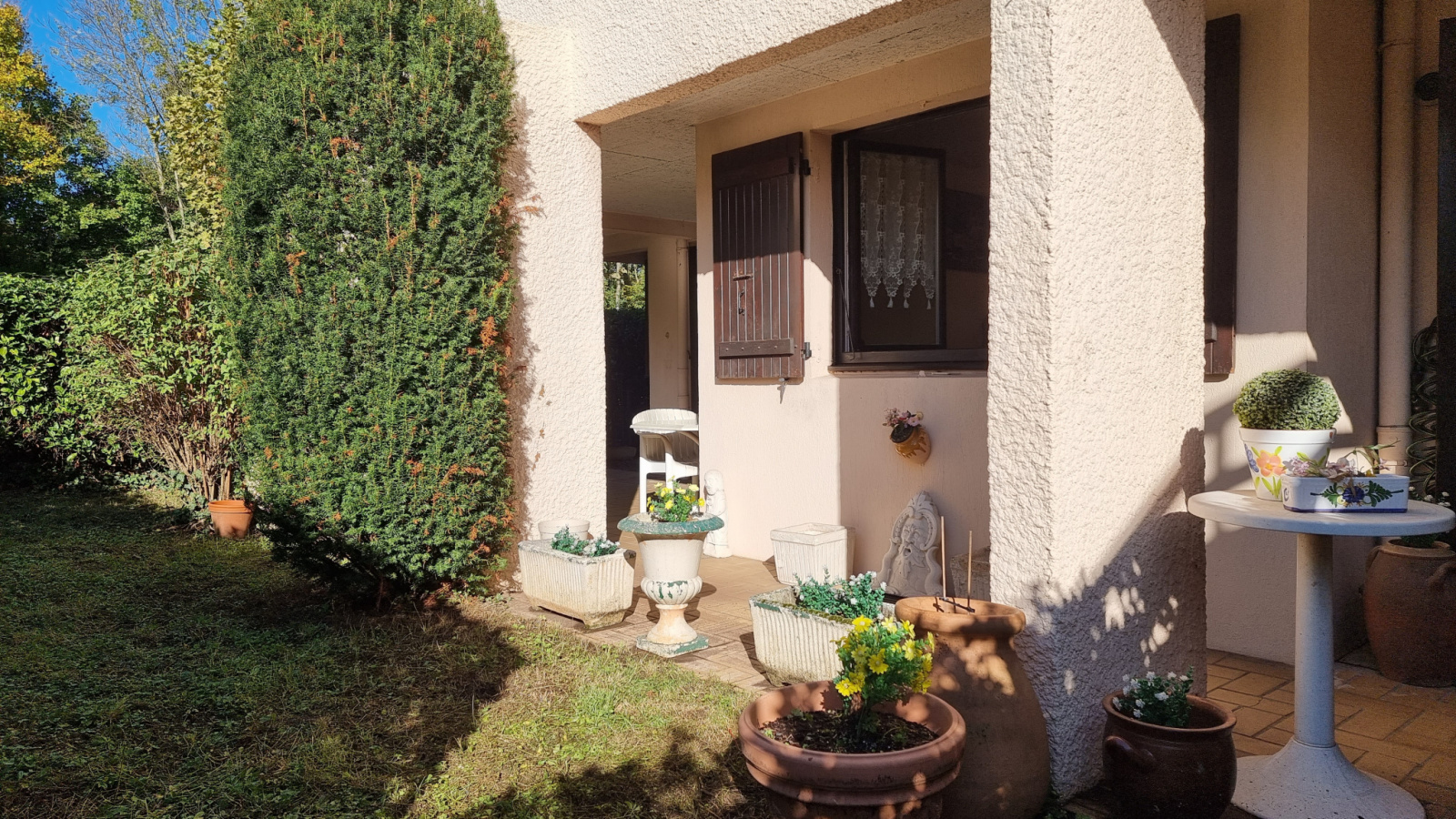 Les pièces sont orientées à l’ouest et permettent de profiter d'agréables moments notamment grâce à une terrasse couverte (pas besoin de climatisation !).